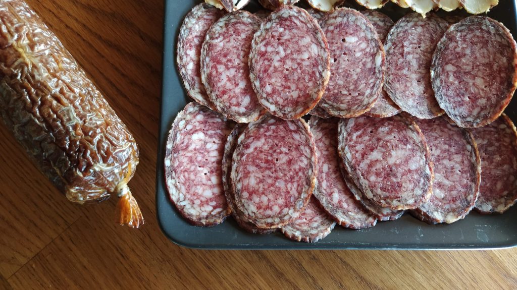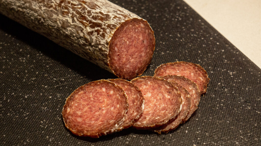 La Rose Hip Hill, carnea de capră nu este doar un produs — este ingredientul principal în multe dintre preparatele pe care le gătim pentru oaspeții noștri. O transformăm cu grijă în chiftele fragede, sos bogat pentru spaghetti bolognese, tocănițe lente cu găluște de casă, fripturi la cuptor cu cimbrișor, supe și ciorbe rustice cu legume din grădină. Preparăm și salam uscat din carne de capră, maturat lent până când textura devine fermă și gustul intens, având un conținut de grăsime mai redus decât salamul obișnuit din carne de porc. Fiecare preparat este făcut în loturi mici, cu condimente naturale și răbdare, astfel încât aroma fină a cărnii să fie pusă în valoare la fiecare îmbucătură.